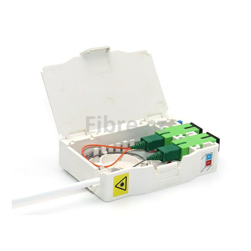 It is suitable for connecting SC/APC simplex adapters. Installation on DIN rail and indoor applications. Easy to install and with a compact design, the box allowed the user to connect up to 4 fibers.