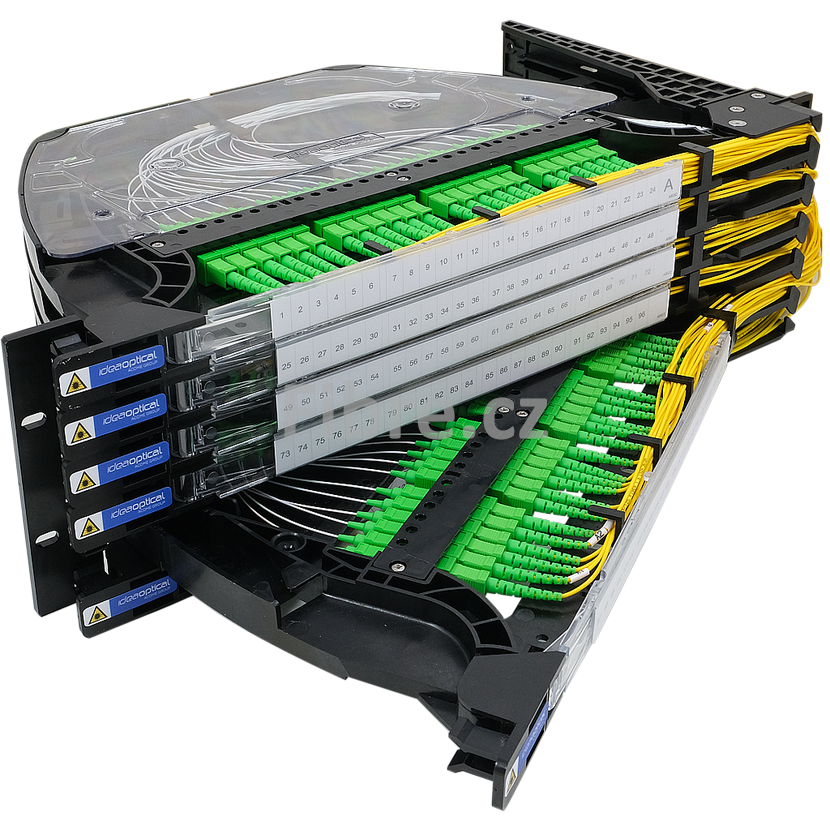 Výhody: - pravé nebo levé provedení vyklopení - vysoká hustota vláken - snadný přístup k adapterům, pigtailům, svarům i přívodním kabelům