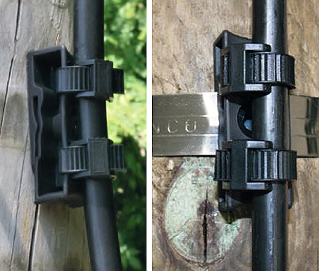 Držák - svod kabelu slouží k bezpečnému svedení kabelu ze sloupu, antény, rozvaděče apod.